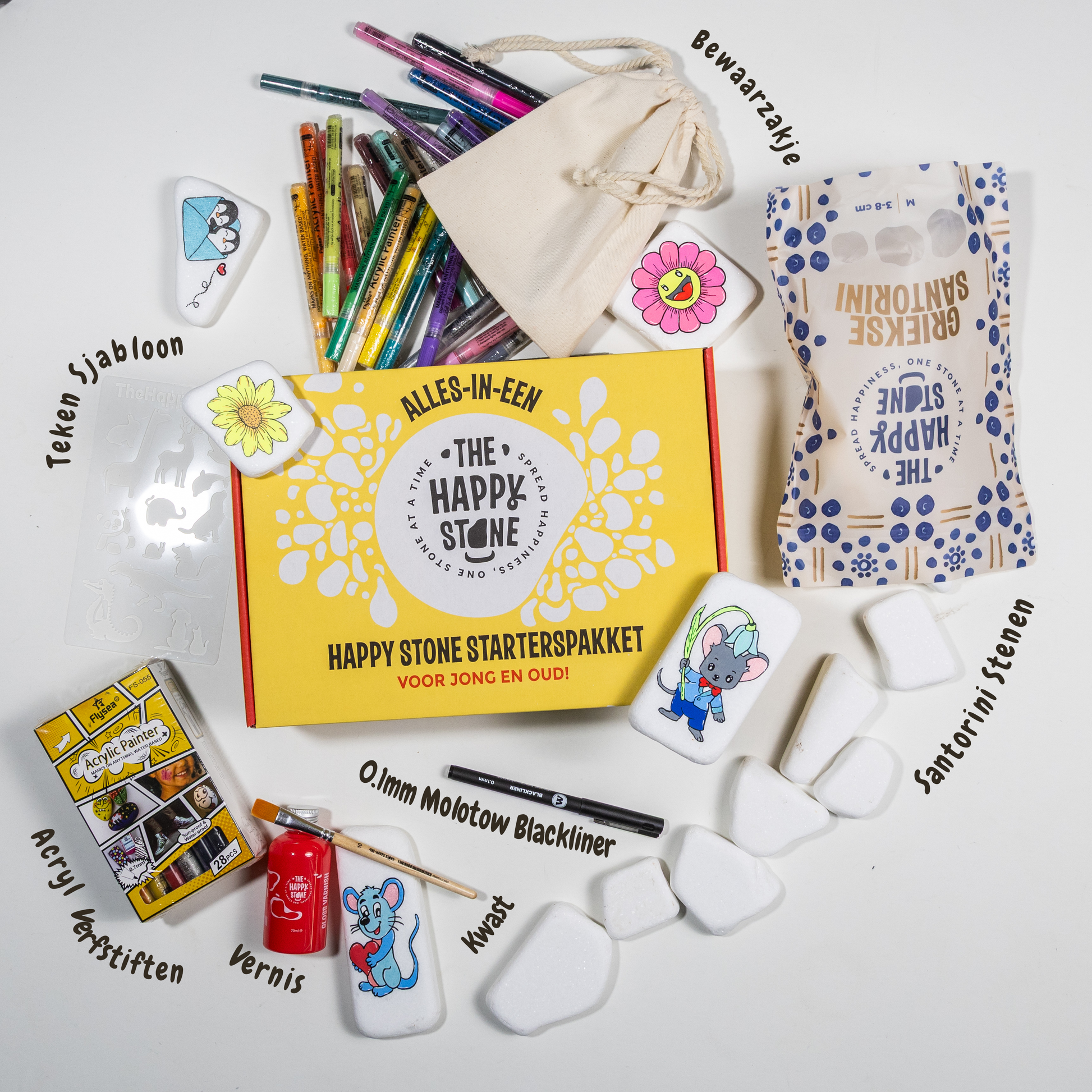 Ontdek de perfecte manier om te ontspannen en creatief bezig te zijn: het Happy Stone Alles-in-1 Pakket!